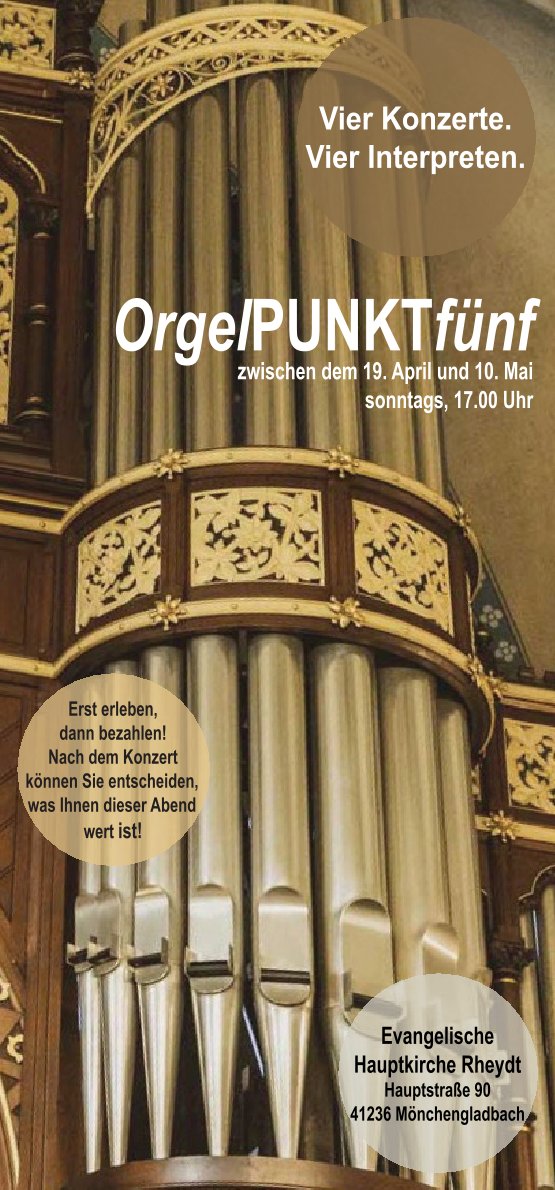 Das zweite Konzert wird von Niklas Piel, Organist der katholischen Citykirche St. Dionysius Krefeld, gestaltet. Es erklingen in österlicher Freude u.a. Kompositionen von J. G. Rheinberger.